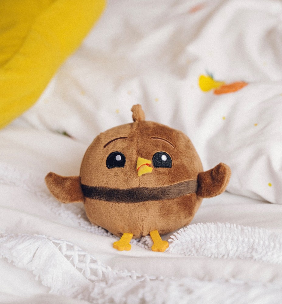 Pi Po, un o gymeriadau hoffus Cywion Bach, ar gael fel tegan meddal meddal.
