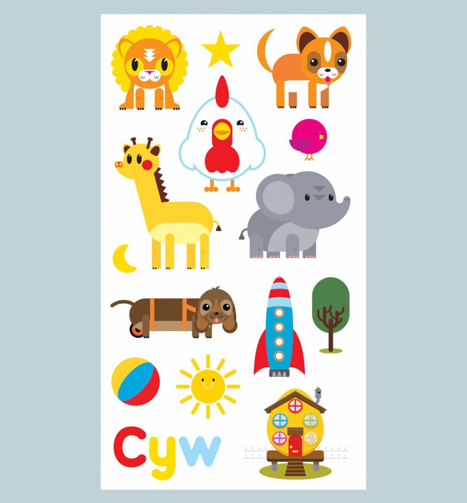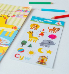 • Set of 15 colourful stickers of Cyw characters and elements